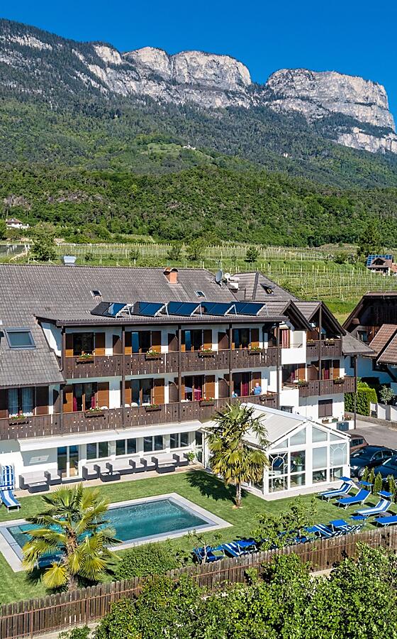 Und für einen gelungenen Tagesausklang ist in unserem Hotel in Eppan, Südtirol, auch gesorgt. Mit einer großen, sonnigen Liegewiese mit beheiztem Außenpool sowie unserer alpin-mediterranen Genießer-Halbpension.